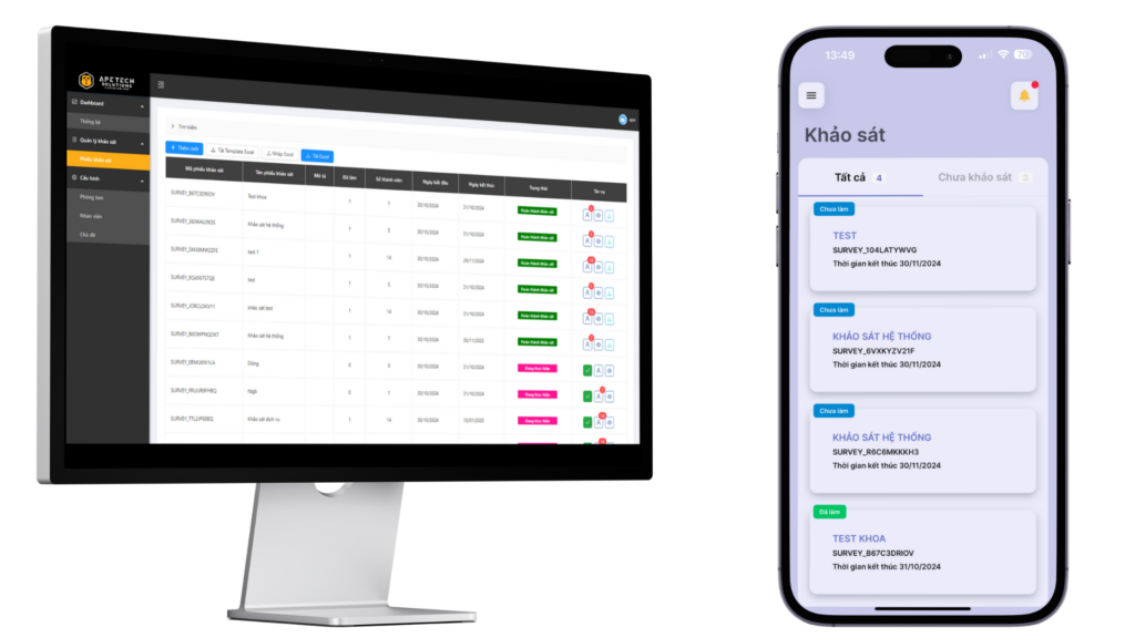 Với kinh nghiệm và chuyên môn trong lĩnh vực công nghệ, APETECHS mang đến giải pháp khảo sát nội bộ toàn diện và tối ưu, giúp các doanh nghiệp nâng cao năng lực quản lý và hiệu quả hoạt động. Hãy để hệ thống khảo sát của APETECHS trở thành công cụ hỗ trợ đắc lực cho doanh nghiệp của bạn!